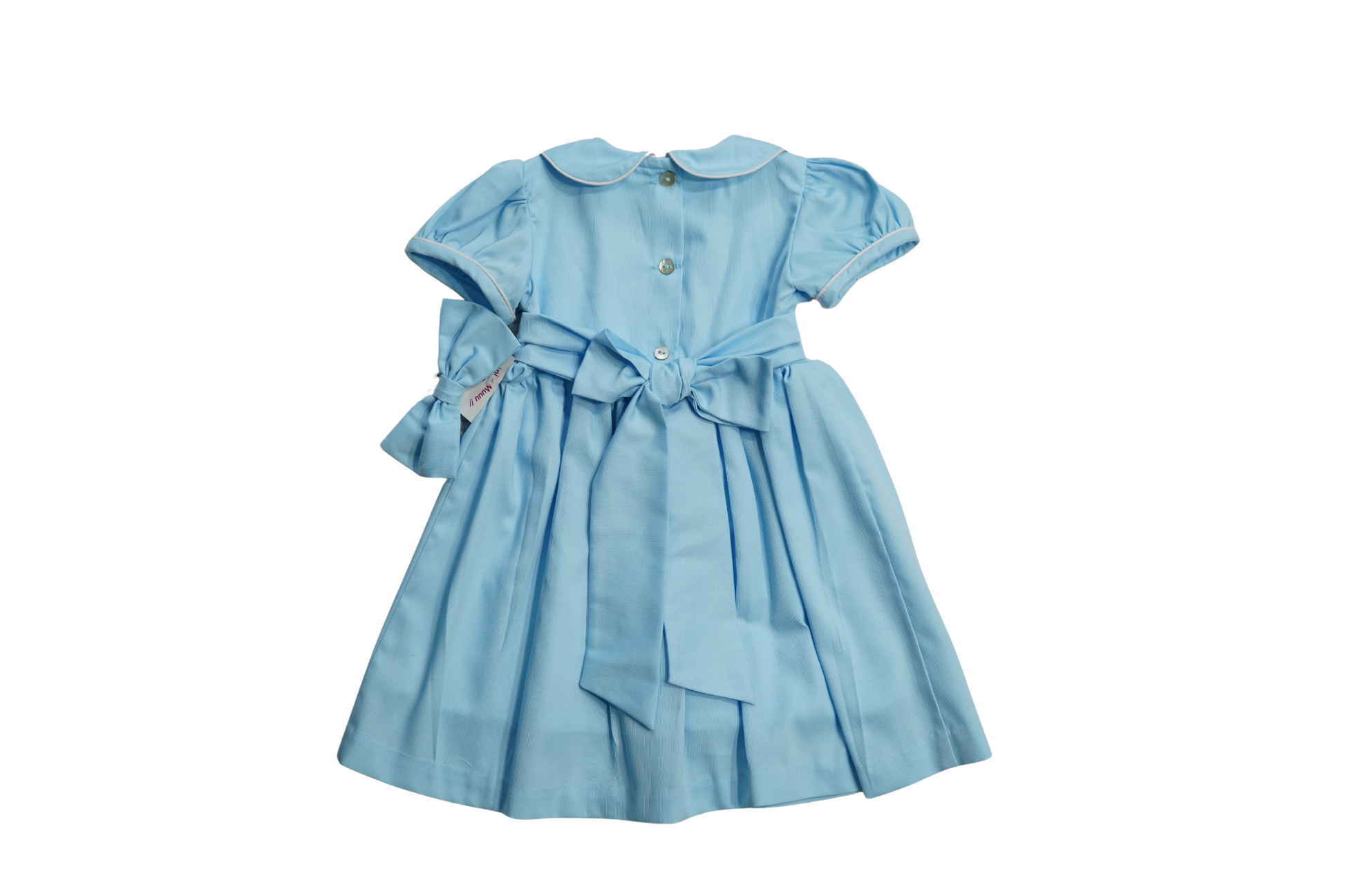 This timeless dress features pastel hand-smocking, puff sleeves, and a Peter Pan collar β all crafted in breathable piquΓ© cotton. A sweet heirloom piece for birthdays, portraits, and special days.