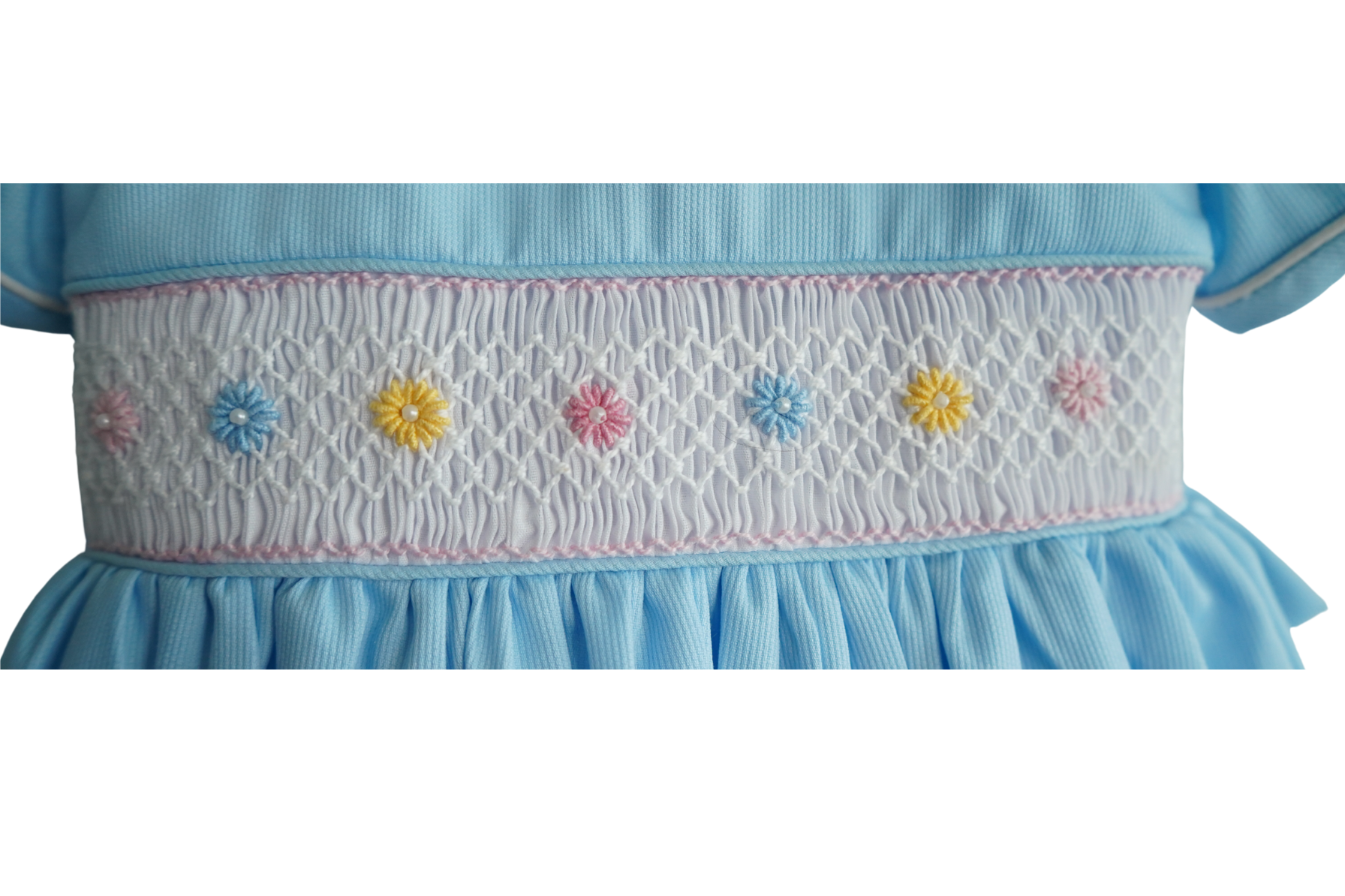 Hand-smocked waistband with embroidered florals
