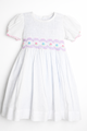 White Linen Smocked little girl Toddler Dress with Floral hand Embroidery – Puff Sleeve Heirloom Outfit" Size: 2T